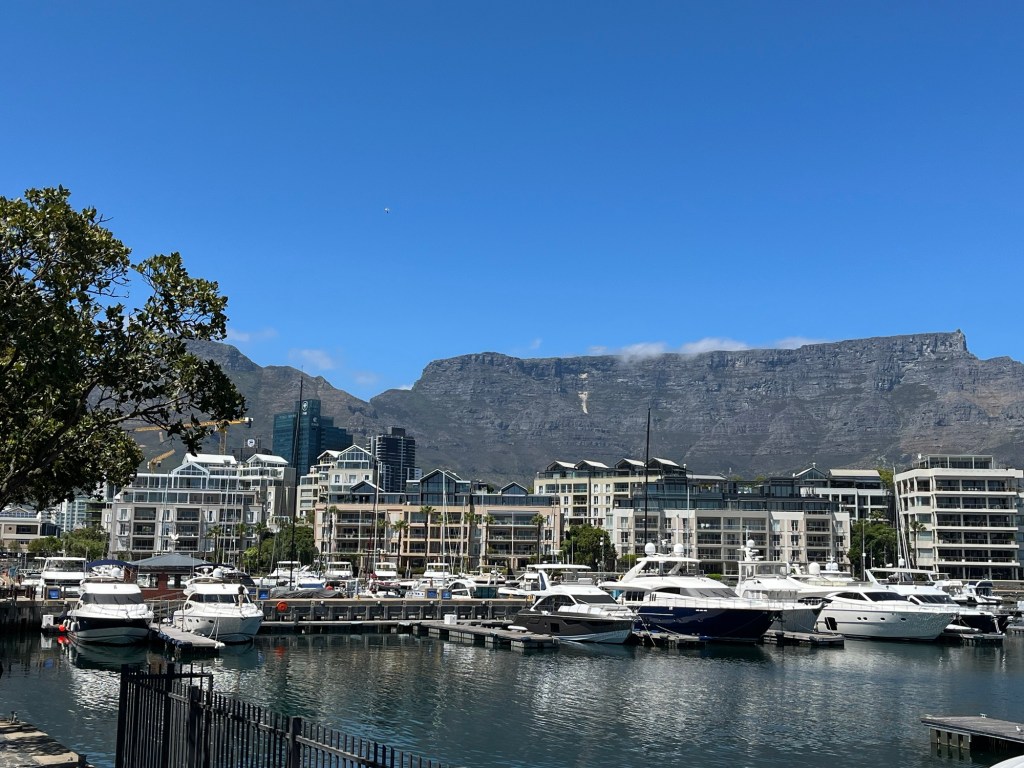 and a view of Table Mountain, this time on a clear day, with prime real estate condos on the waterfront…