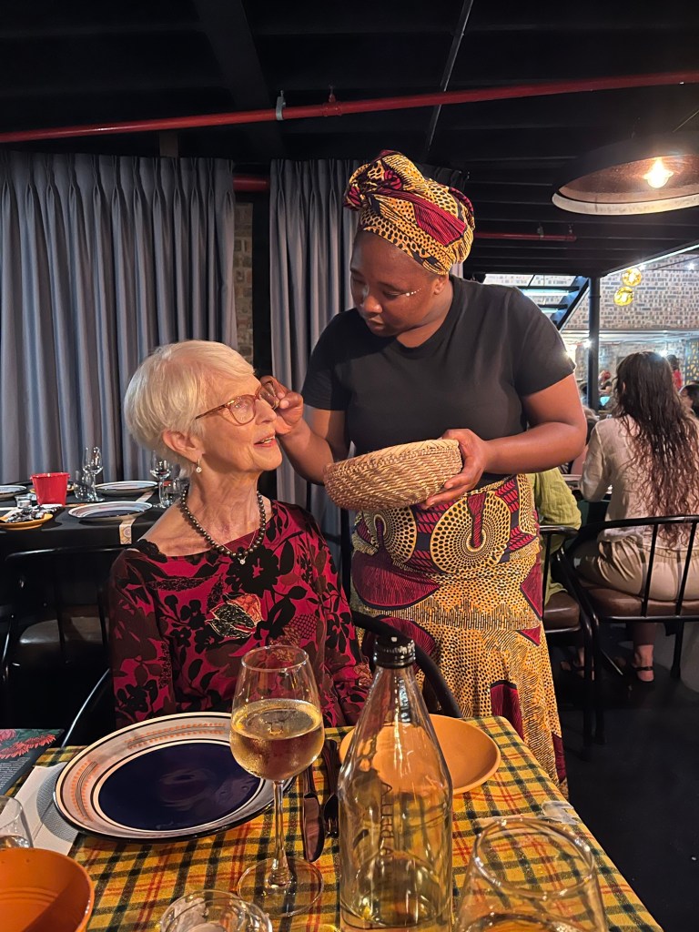 Feeling so grateful at 85 to be in South Africa following the long day (24hrs) to get here. OKC to Chicago to DC, 2 layovers then 14 hr flight. Left home on Monday. Arrived here on Tuesday and today is Wednesday. Whew!!