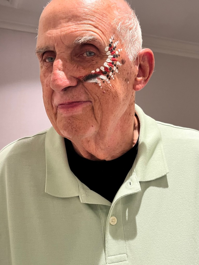 We decided to keep our face paint on until after the walking food tour tomorrow afternoon. Wonder how much will come off on the pillows. Oh well, it’ll come out in the wash.