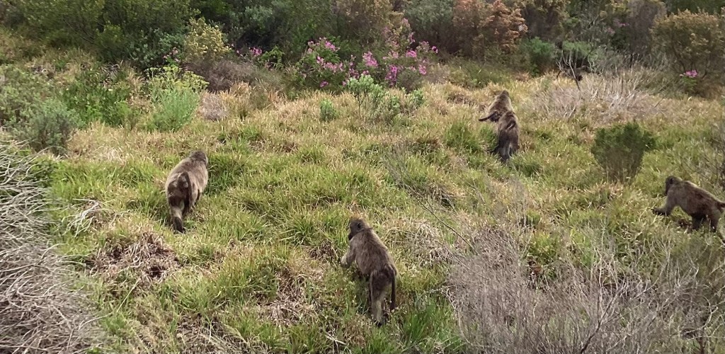 On the drive to lunch we stopped to admire the north end of a family of baboons walking south.