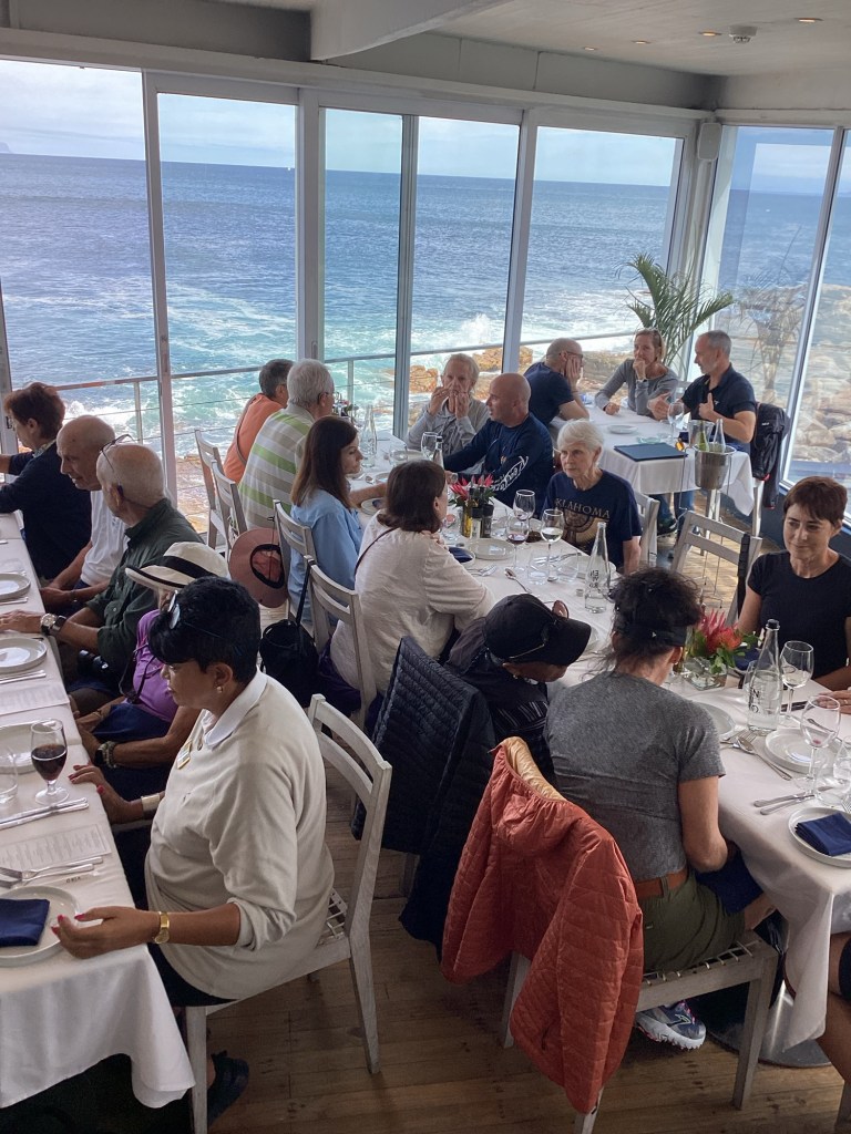 Lunch was at Harbour House at Kalk Bay overlooking the water. We started with a beetroot carpaccio. For the main course I had the salmon and Barb the seafood selection (prawns, mussels, lime fish, and calamari tubes). For dessert we had the sponge cake, panna cotta and black sesame seed gelato.