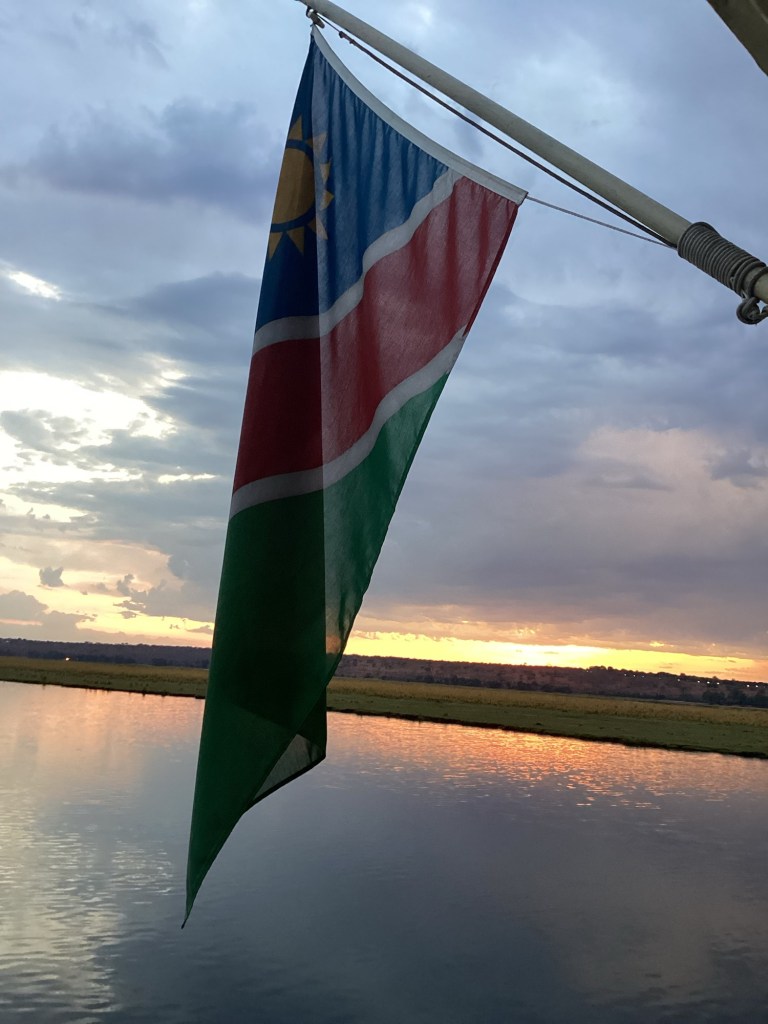 We awoke to the rising sun on the Namibian flag