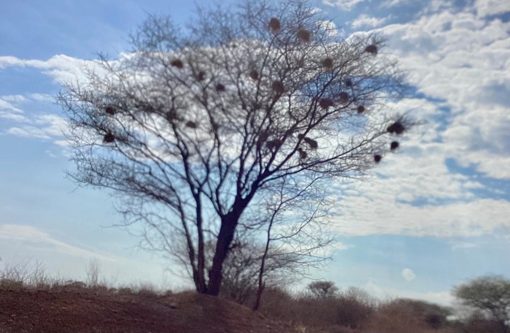 But we came to see the animals and were not disappointed. First were the nests of weaver birds that clung to the trees.