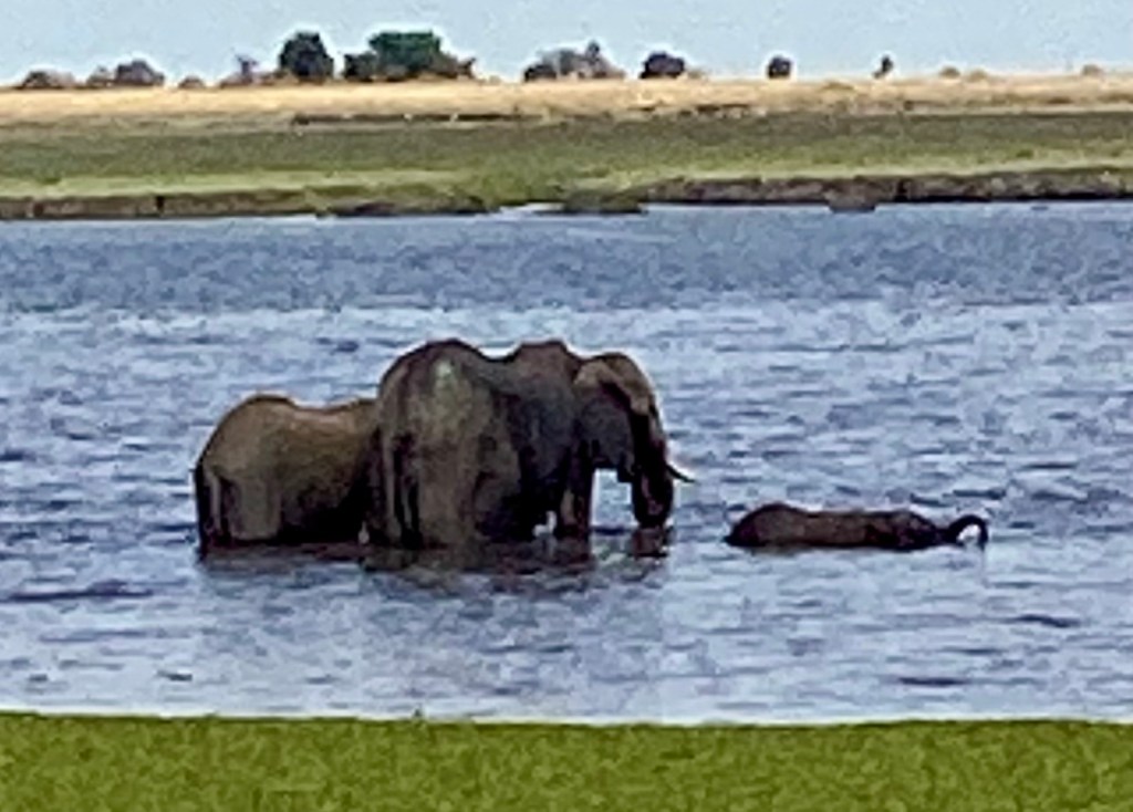 Lions, giraffes, elephants, wart hogs, zebras, impalas, gazelle, and more. Up close and personal. But the heat was overwhelming. 101 degrees and no a/c. It gets this hot in Oklahoma but we stay inside. Today I will stay on the boat …….