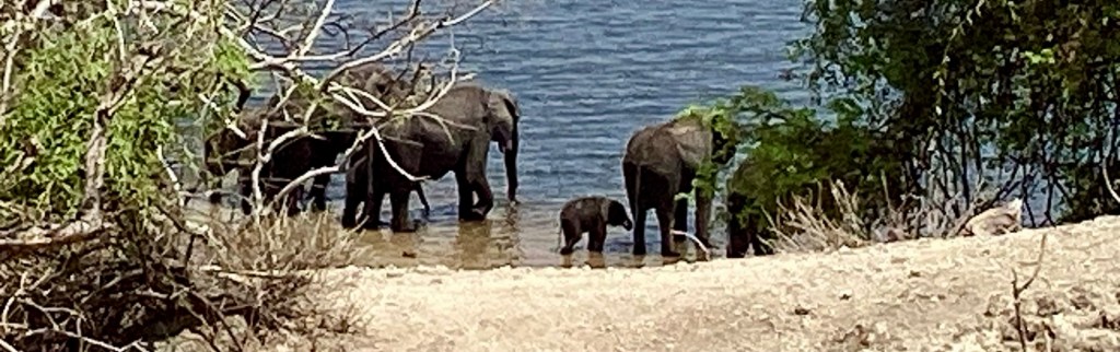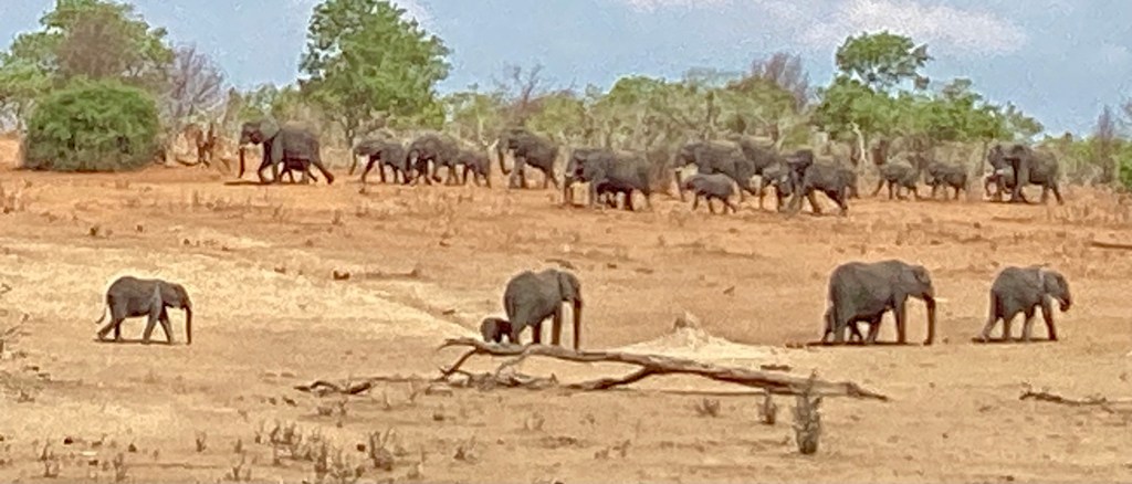 ..before watching two herds of elephants passing each other, one leaving the river, the other headed to the river..