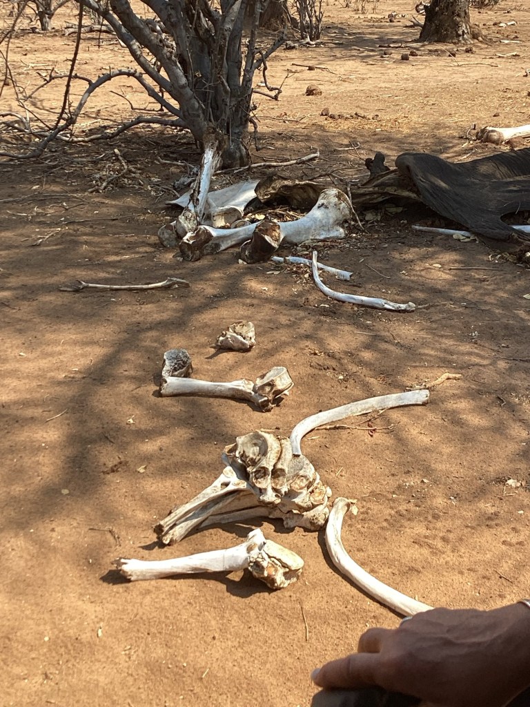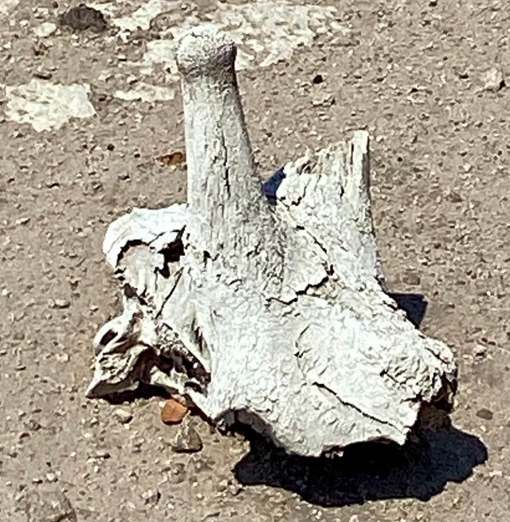 We spotted an animal skull as the guide asked what animal is was: we had learned a thing or two by that time so it was easy to recognize the skull of an giraffe by the rounded horn on top.