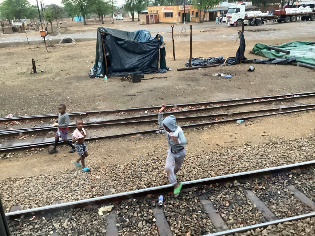The train stopped for the night at the border town of Bulawayo, Zimbabwe.