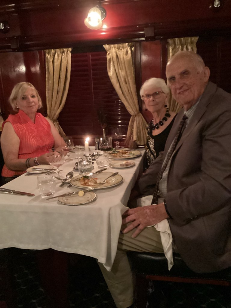 Half way through the meal the train manager informed us that during the last stop someone got under one of the cars and disconnected several cables. The repair was easy but they would have to stop the train and turn off the generator. That meant dinner by candle light and no air conditioning. The repair stop turned into a real positive as the candle light dinner was delightful, and the repair was made quickly.